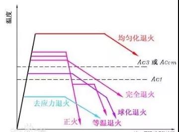 淬火 什么叫淬火? 鋼的淬火是將鋼加熱到臨界溫度Ac3(亞共析鋼)或Ac1(過共析鋼)以上溫度,保溫一段時間,使之全部或部分奧氏體化,然后以大于臨界冷卻速度的冷速快冷到Ms以下(或Ms附近等溫)進行馬氏體(或貝氏體)轉變的熱處理工藝。通常也將鋁合金、銅合金、鈦合金、鋼化玻璃等材料的固溶處理或帶有快速冷卻過程的熱處理工藝稱為淬火。 淬火的目的: 1)提高金屬成材或零件的機械性能。例如:提高工具、軸承等的硬度和耐磨性,提高彈簧的彈性極限,提高軸類零件的綜合機械性能等。 2)改善某些特殊鋼的材料性能或化學性能。如提高不銹鋼的耐蝕性,增加磁鋼的永磁性等。 淬火冷卻時,除需合理選用淬火介質外,還要有正確的淬火方法,常用的淬火方法,主要有單液淬火,雙液淬火,分級淬火、等溫淬火,局部淬火等。 鋼鐵工件在淬火后具有以下特點: ① 得到了馬氏體、貝氏體、殘余奧氏體等不平衡(即不穩定)組織。 ② 存在較大內應力。 ③ 力學性能不能滿足要求。因此,鋼鐵工件淬火后一般都要經過回火 回火 什么叫回火? 回火是將淬火后的金屬成材或零件加熱到某一溫度,保溫一定時間后,以一定方式冷卻的熱處理工藝,回火是淬火后緊接著進行的一種操作,通常也是工件進行熱處理的最后一道工序,因而把淬火和回火的聯合工藝稱為最終處理。淬火與回火的主要目的是: 1)減少內應力和降低脆性,淬火件存在著很大的應力和脆性,如沒有及時回火往往會產生變形甚至開裂。 2)調整工件的機械性能,工件淬火后,硬度高,脆性大,為了滿足各種工件不同的性能要求,可以通過回火來調整,硬度,強度,塑性和韌性。 3)穩定工件尺寸。通過回火可使金相組織趨于穩定,以保證在以后的使用過程中不再發生變形。 4)改善某些合金鋼的切削性能。 回火的作用在于: ① 提高組織穩定性,使工件在使用過程中不再發生組織轉變,從而使工件幾何尺寸和性能保持穩定。 ② 消除內應力,以便改善工件的使用性能并穩定工件幾何尺寸。 ③ 調整鋼鐵的力學性能以滿足使用要求。 回火之所以具有這些作用,是因為溫度升高時,原子活動能力增強,鋼鐵中的鐵、碳和其他合金元素的原子可以較快地進行擴散,實現原子的重新排列組合,從而使不穩定的不平衡組織逐步轉變為穩定的平衡組織。內應力的消除還與溫度升高時金屬強度降低有關。一般鋼鐵回火時,硬度和強度下降,塑性提高。回火溫度越高,這些力學性能的變化越大。有些合金元素含量較高的合金鋼,在某一溫度范圍回火時,會析出一些顆粒細小的金屬化合物,使強度和硬度上升。這種現象稱為二次硬化。 回火要求:用途不同的工件應在不同溫度下回火,以滿足使用中的要求。 ① 刀具、軸承、滲碳淬火零件、表面淬火零件通常在250℃以下進行低溫回火。低溫回火后硬度變化不大,內應力減小,韌性稍有提高。 ② 彈簧在350~500℃下中溫回火,可獲得較高的彈性和必要的韌性。 ③ 中碳結構鋼制作的零件通常在500~600℃進行高溫回火,以獲得適宜的強度與韌性的良好配合。 鋼在300℃左右回火時,常使其脆性增大,這種現象稱為第一類回火脆性。一般不應在這個溫度區間回火。某些中碳合金結構鋼在高溫回火后,如果緩慢冷至室溫,也易于變脆。這種現象稱為第二類回火脆性。在鋼中加入鉬,或回火時在油或水中冷卻,都可以防止第二類回火脆性。將第二類回火脆性的鋼重新加熱至原來的回火溫度,便可以消除這種脆性。 在生產中,常根據對工件性能的要求。按加熱溫度的不同,把回火分為低溫回火,中溫回火,和高溫回火。淬火和隨后的高溫回火相結合的熱處理工藝稱為調質,即在具有高度強度的同時,又有好的塑性韌性。 1、低溫回火:150-250℃ ,M回,減少內應力和脆性,提高塑韌性,有較高的硬度和耐磨性。用于制作量具、刀具和滾動軸承等。 2、中溫回火:350-500℃ ,T回,具有較高的彈性,有一定的塑性和硬度。用于制作彈簧、鍛模等。 3、高溫回火:500-650℃ ,S回,具有良好的綜合力學性能。用于制作齒輪、曲軸等。 正火 什么是正火? 正火是—種改善鋼材韌性的熱處理。將鋼構件加熱到Ac3溫度以上30〜50℃后,保溫一段時間出爐空冷。主要特點是冷卻速度快于退火而低于淬火,正火時可在稍快的冷卻中使鋼材的結晶晶粒細化,不但可得到滿意的強度,而且可以明顯提高韌性(AKV值),降低構件的開裂傾向。—些低合金熱軋鋼板、低合金鋼鍛件與鑄造件經正火處理后,材料的綜合力學性能可以大大改善,而且也改善了切削性能. 正火有以下目的和用途: ① 對亞共析鋼,正火用以消除鑄、鍛、焊件的過熱粗晶組織和魏氏組織,軋材中的帶狀組織;細化晶粒;并可作為淬火前的預先熱處理。 ② 對過共析鋼,正火可以消除網狀二次滲碳體,并使珠光體細化,不但改善機械性能,而且有利于以后的球化退火。 ③ 對低碳深沖薄鋼板,正火可以消除晶界的游離滲碳體,以改善其深沖性能。 ④ 對低碳鋼和低碳低合金鋼,采用正火,可得到較多的細片狀珠光體組織,使硬度增高到HB140-190,避免切削時的“粘刀”現象,改善切削加工性。對中碳鋼,在既可用正火又可用退火的場合下,用正火更為經濟和方便。 ⑤ 對普通中碳結構鋼,在力學性能要求不高的場合下,可用正火代替淬火加高溫回火,不僅操作簡便,而且使鋼材的組織和尺寸穩定。 ⑧ 除鋼件和鋼材以外,正火還廣泛用