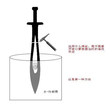 由于屠龍刀和倚天劍比較鋒利,互砍就會折斷,可以得出,材料的硬度比較高,韌性比較差,可以推斷出大概是高碳鋼,里面所含合金元素比例未知。而且刀劍均有強磁性,焊接難度可謂難上加難。